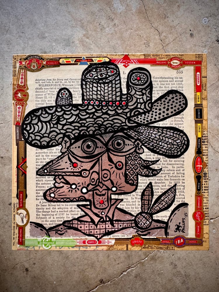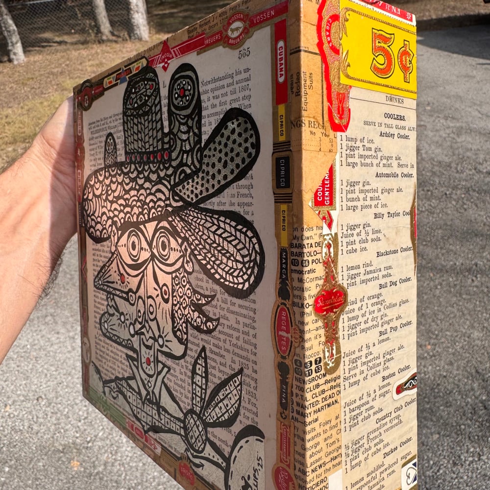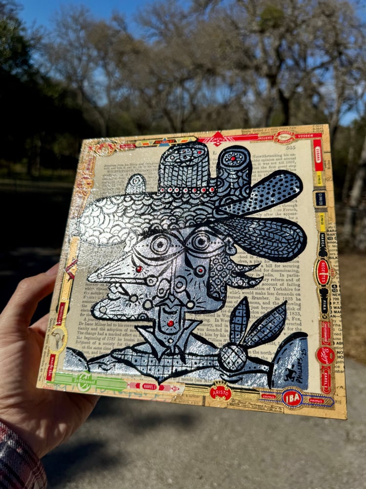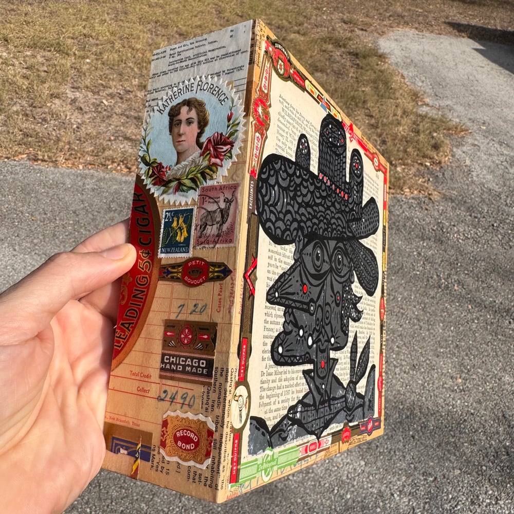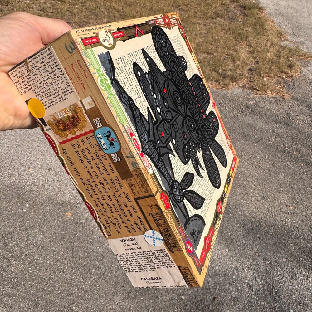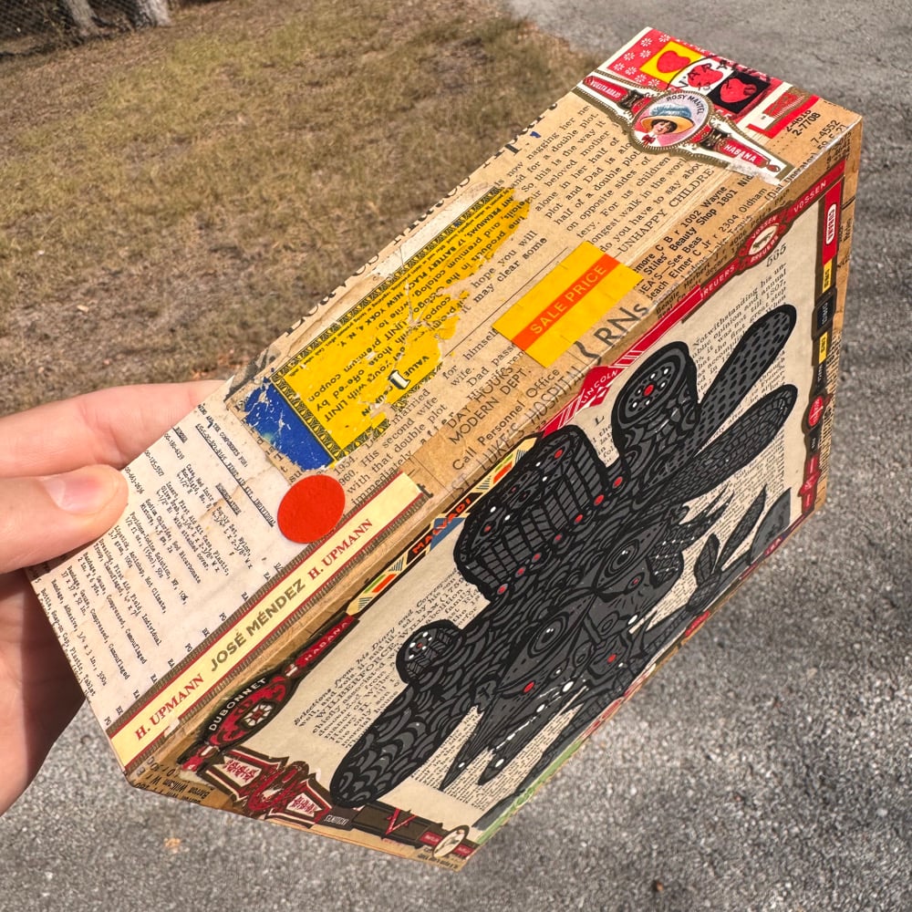 “All That Sparkles” - acrylic on collaged nesting box. 8” x 8” x 2.5”d