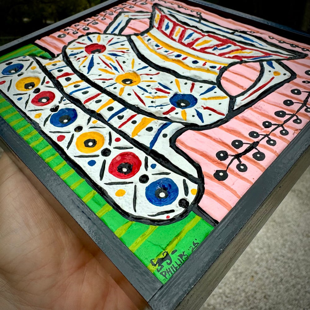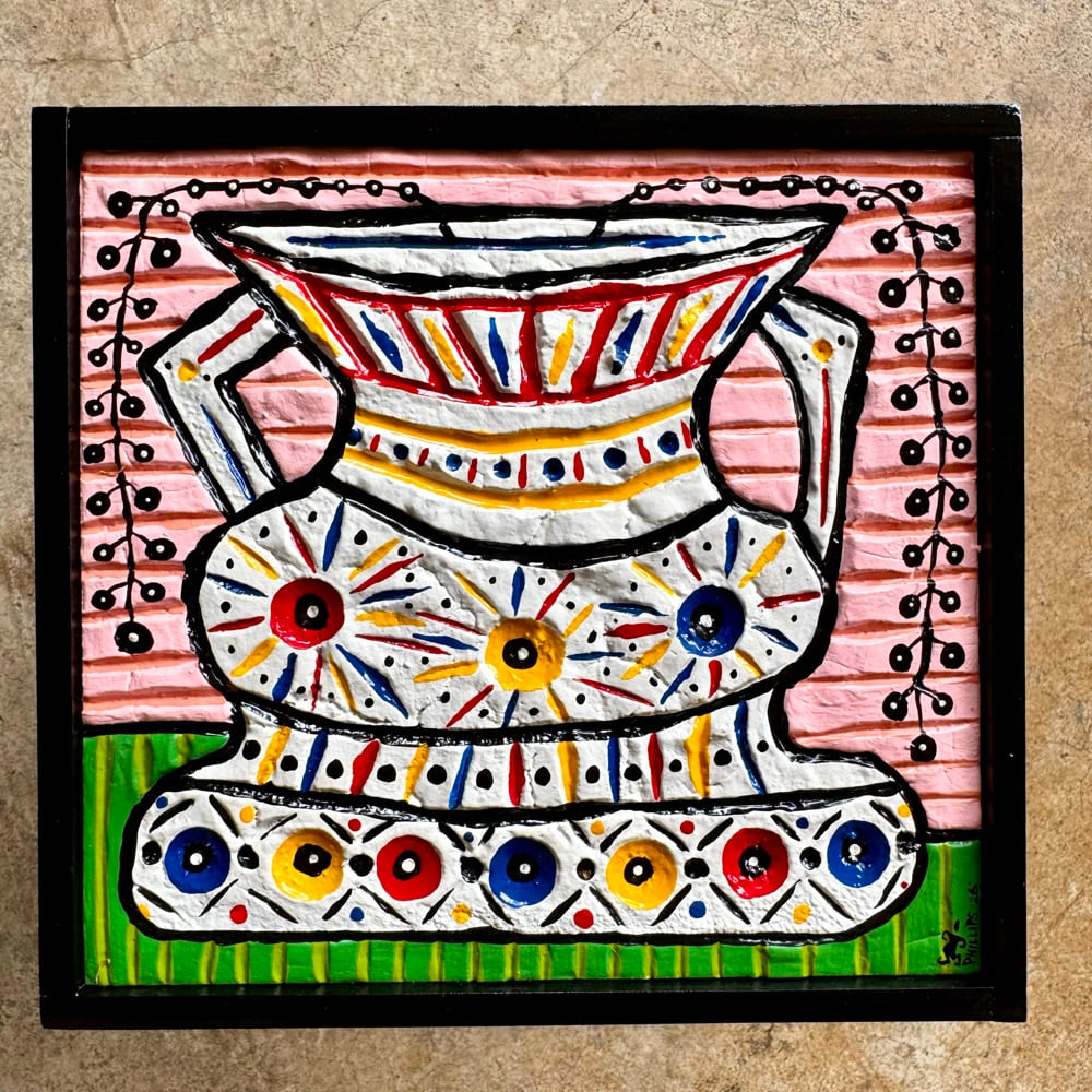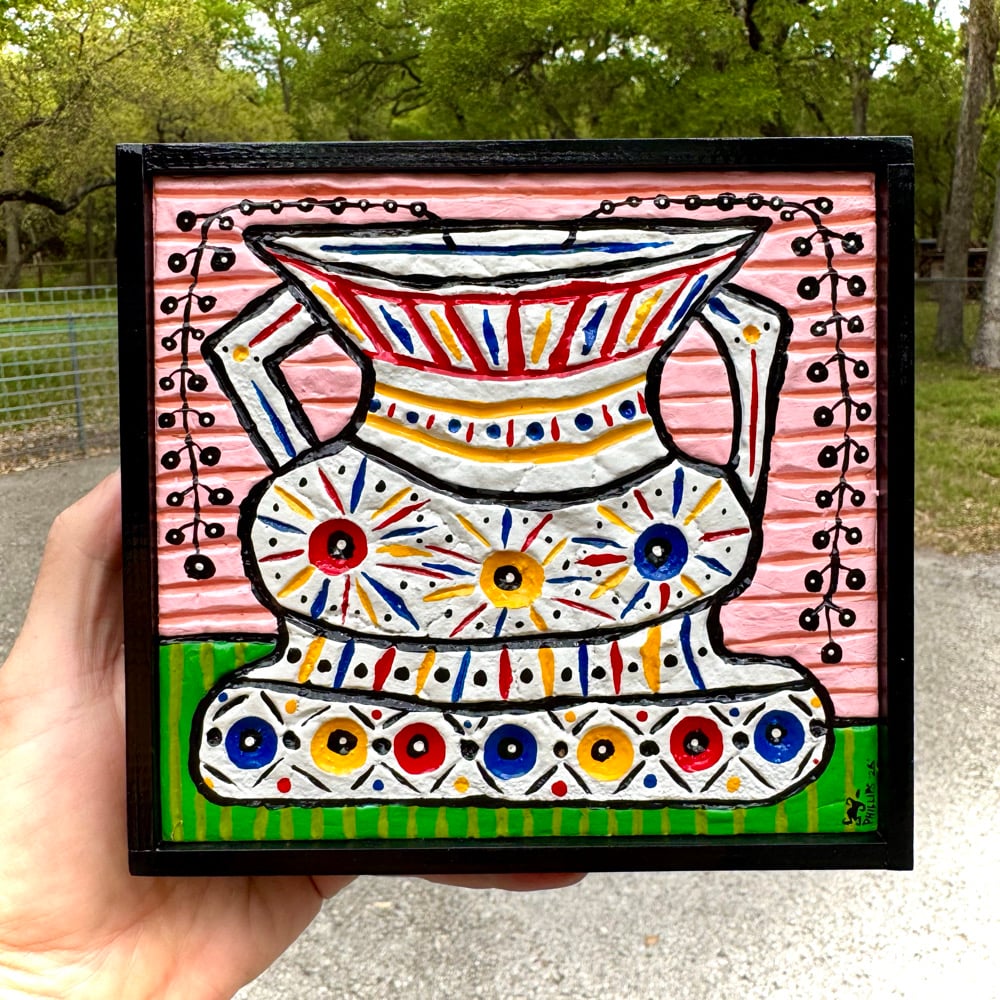 “Black Pearls” - acrylic on hand carved mixture poured on salvaged wood. Framed. Gloss finish. Ready to hang. 7”w x 6.5”t