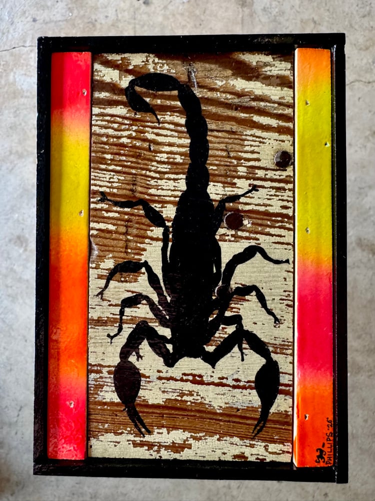 “Boot Dweller” - acrylic on salvaged wood. Gloss finish. Framed. Ready to hang. 4”w x 6”t x 2”d