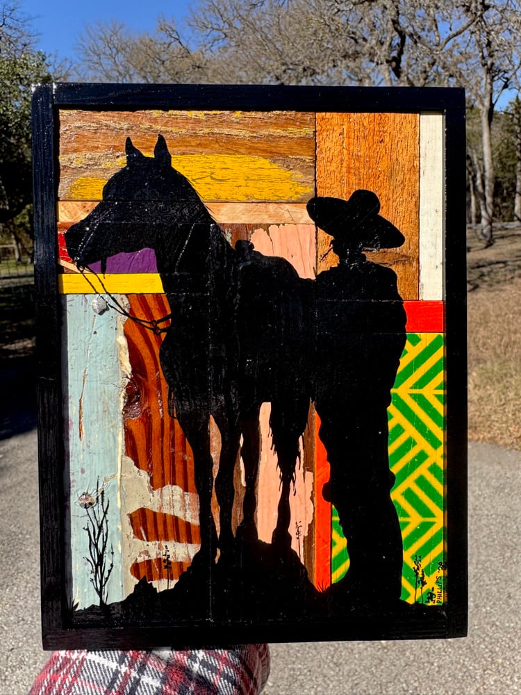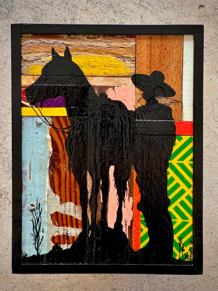 “Buds” - acrylic on salvaged wood assemblage. Gloss finish. Framed. Ready to hang. 6.5”w x 8.5”t