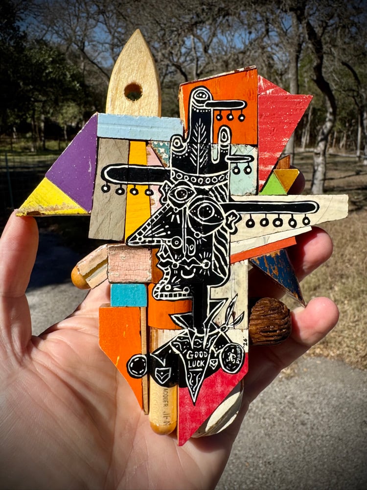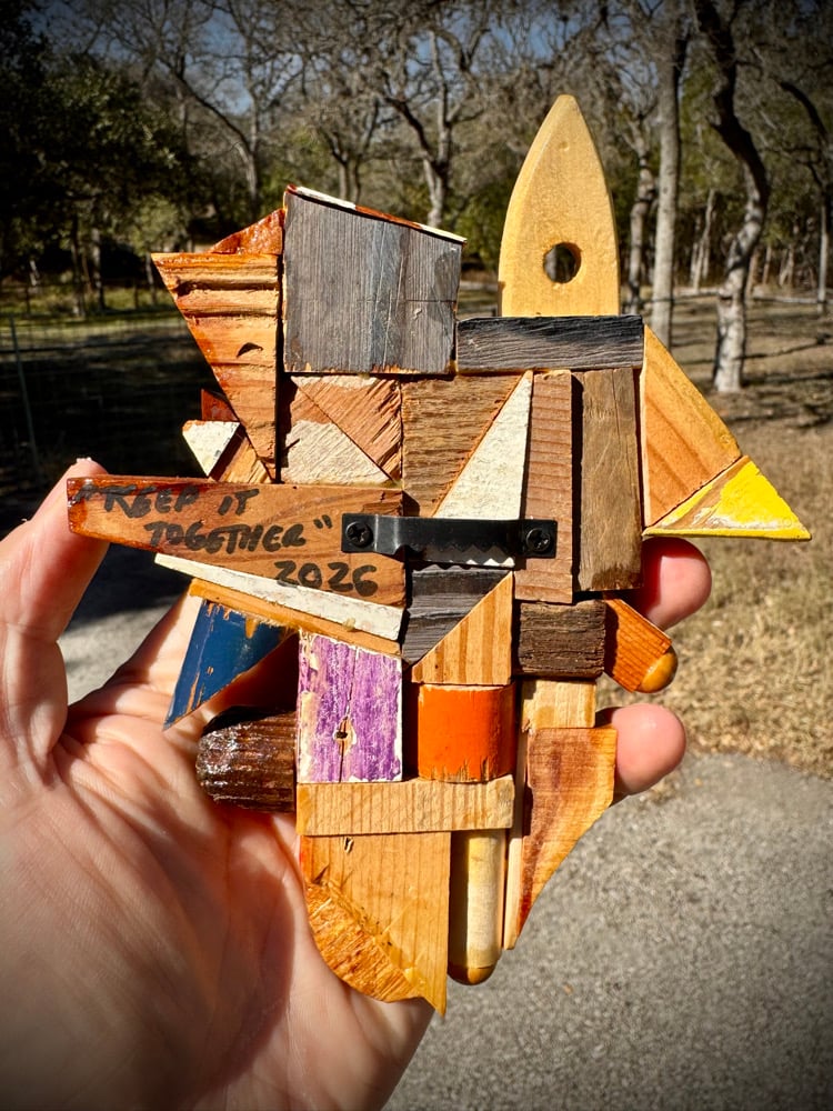 “Keep it Together” - acrylic on random scrap wood assemblage. Gloss finish. Ready to hang. 5.5”w x7”t.
