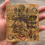 “Look Me Up” - acrylic on collaged phone book page scraps from 1940 Austin phone book on construction debris. Ready to hang. Gloss finish. 3.25”w x 3.75”t x 1.5”d.