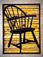 “Meta Chair” - acrylic on salvaged wood antique chair assemblage. Framed. Gloss finish for easy care and to protect the patina. Ready to hang. 11”w x 14.5”t.