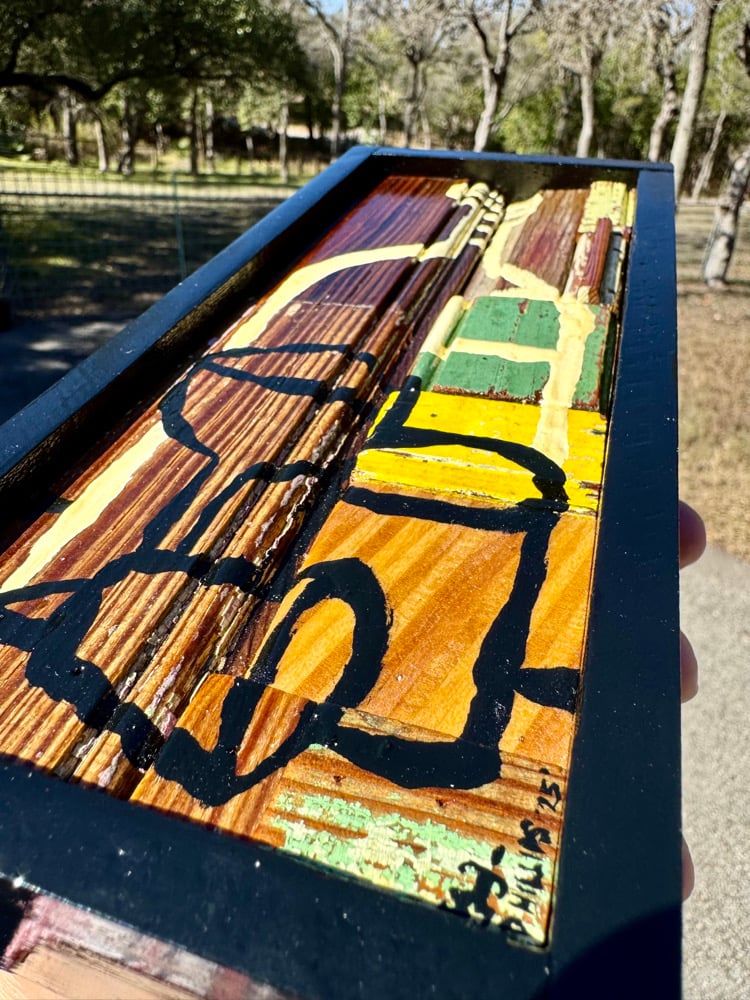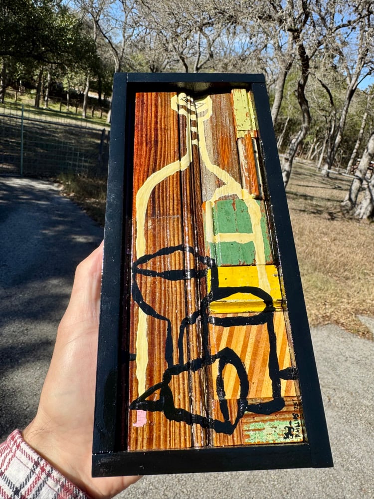 “Stockyard Drinks” - acrylic on salvaged 100 year old bead board. Framed. Gloss finish. Ready to hang. 4.5”w x 10”t