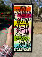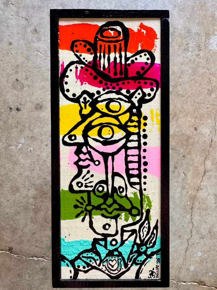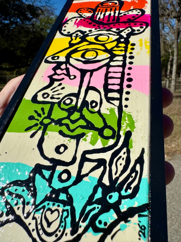 “Striper” - acrylic on salvaged pine. Gloss finish. Framed. Ready to hang. 4”w x 9”t.