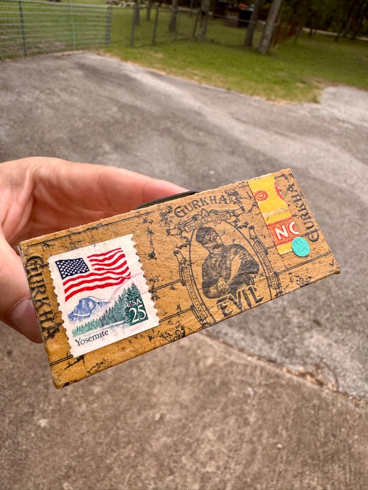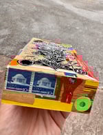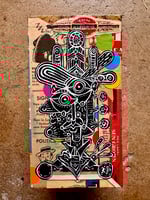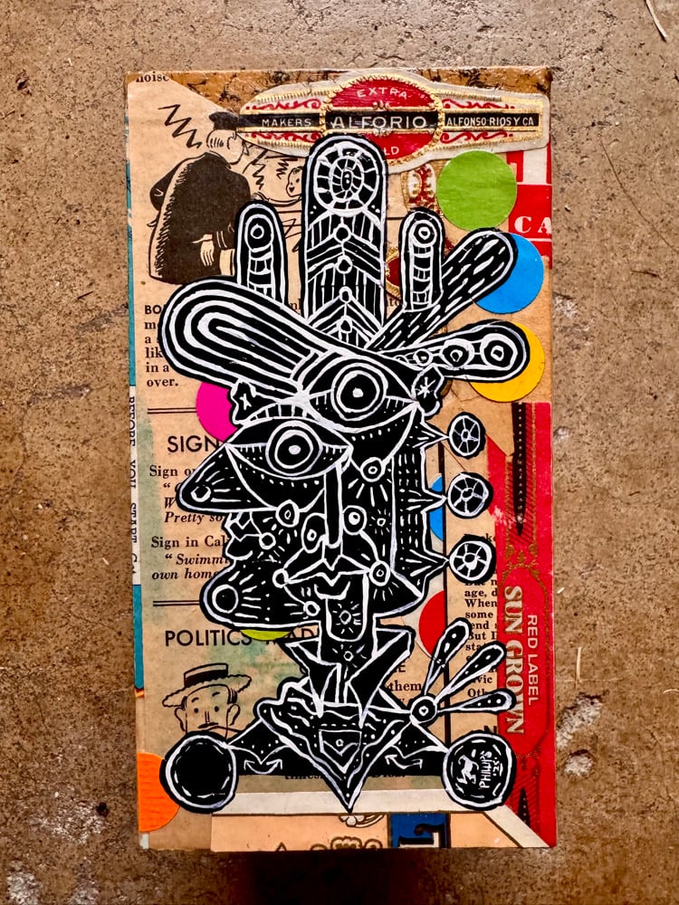 “Sweep Out the Dust Bunnies of Your Mind” - acrylic on collaged construction debris. 3.25”w x 6”t x 1.5”d.