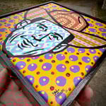 “The Peyote Button Kid” - acrylic, spray paint on canvas. Framed. Gloss finish. Ready to hang. 8.5”w x 8.5”t