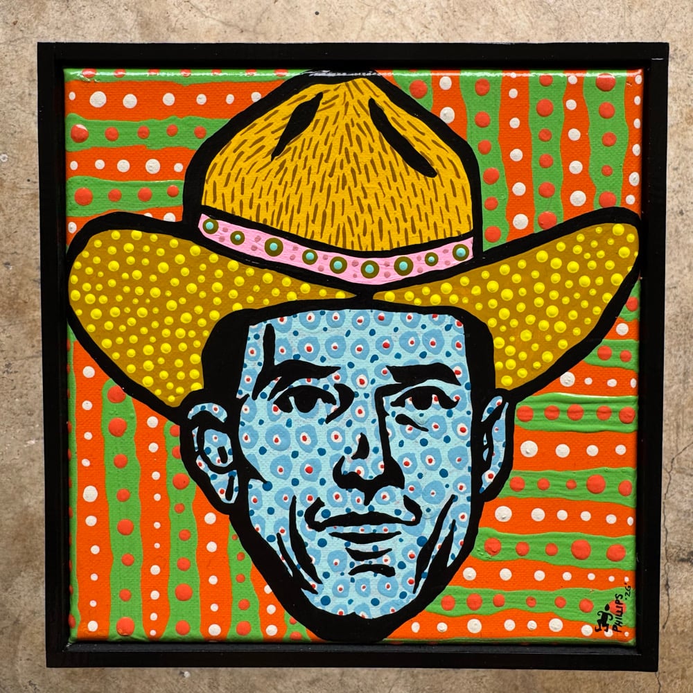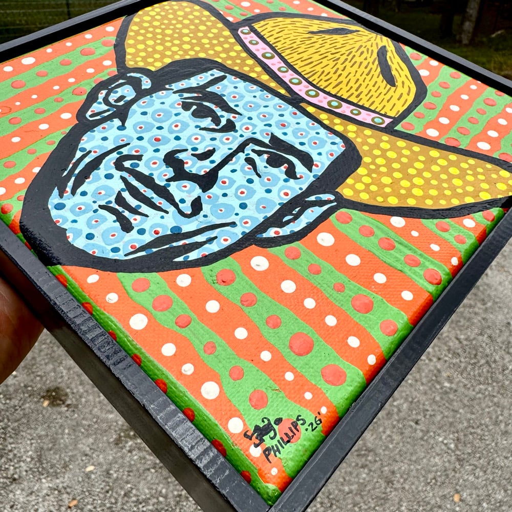 “The Pocketwatch Kid” - acrylic on canvas. Framed. Gloss finish. Ready to hang. 8.5”w x 8.5”t