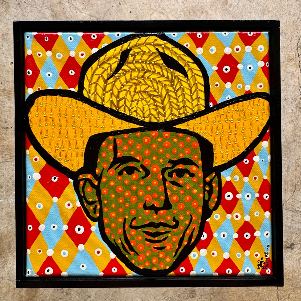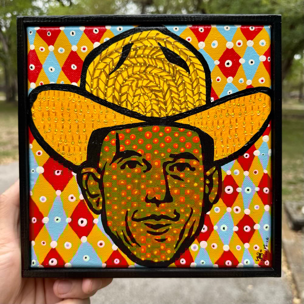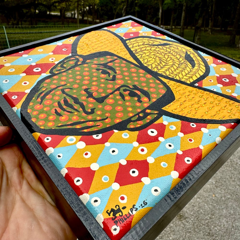 “The Steamshovel Kid” - acrylic, spray paint on canvas. Framed. Gloss finish. Ready to hang. 8.5”w x 8.5”t