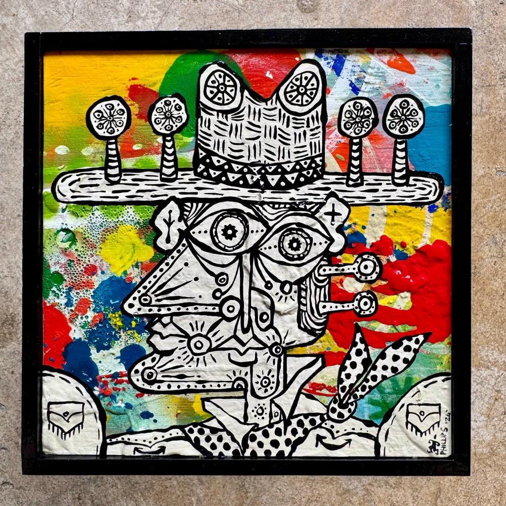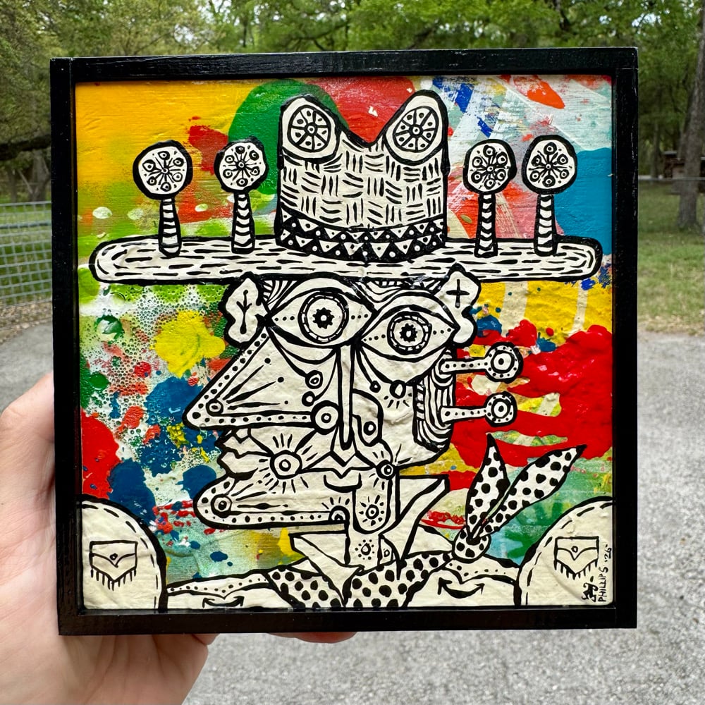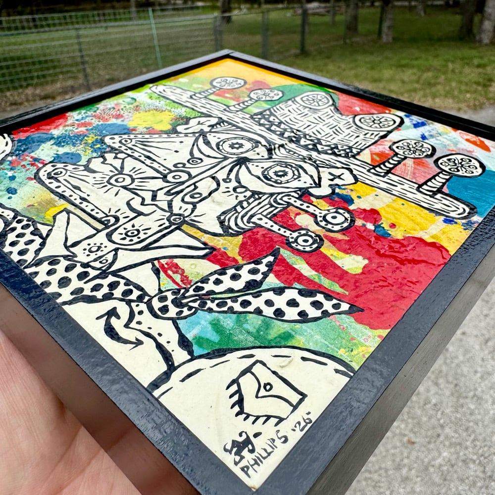 “Wildflower Season” - acrylic, spray paint on salvaged plywood. Framed. Gloss finish. Ready to hang. 6.5”w x 6.5”t.